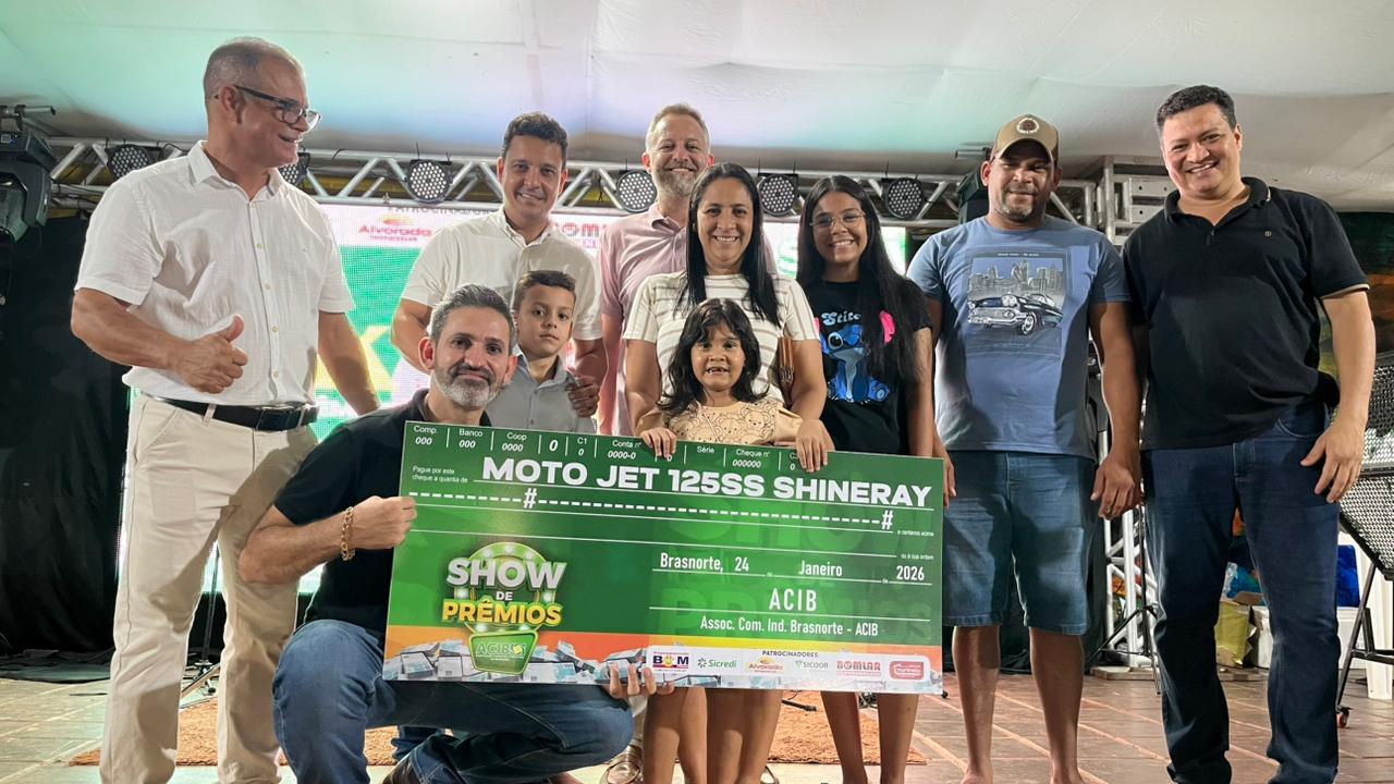 A Associação Comercial e Empresarial de Brasnorte (ACIB) realizou na noite deste sábado (24), na Praça da Bíblia, o sorteio da campanha Show de Prêmios, encerrando oficialmente a edição de 2025 com mais de R$ 85 mil em premiações e recorde de participação do comércio e dos consumidores do município.