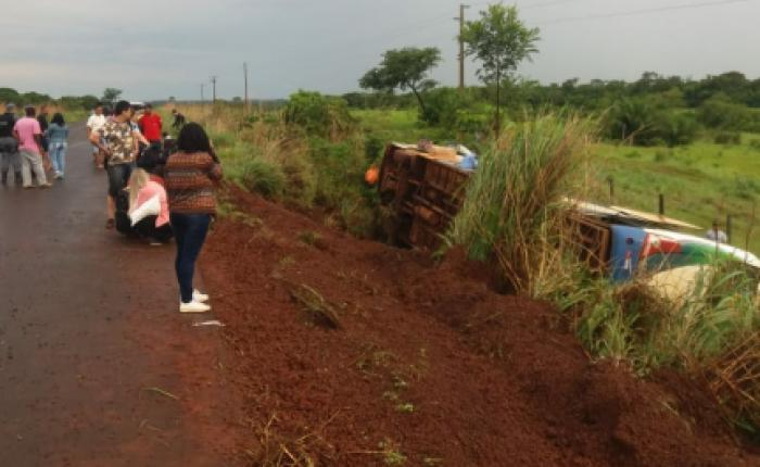 Ônibus da empresa Viação Juína com vários passageiros tombou na MT-246, na zona rural de Jangada (80 km ao norte de Cuiabá), na tarde de quarta-feira (21) e deixou feridos.