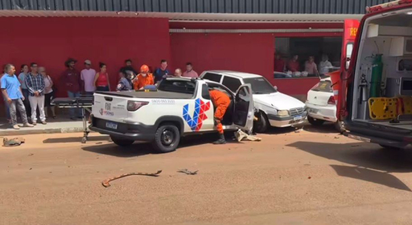 Um grave acidente de trânsito foi registrado na manhã desta segunda-feira, por volta das 11h, na Avenida Cuiabá, no Módulo 5, em frente ao Supermercado Favorito, em Juína.