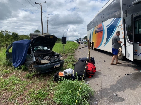 Batida entre carro e ônibus de Juína mata 3 pessoas