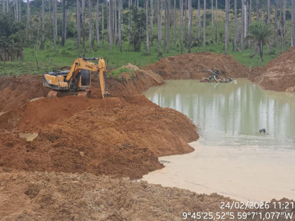 Equipes do Batalhão de Polícia Militar de Proteção Ambiental flagraram, nesta terça-feira (24.2), um garimpo irregular, em uma zona rural do município de Colniza (1.058 km de Cuiabá). No local, as equipes localizaram quatro motores e uma escavadeira hidráulica, utilizadas na extração de minérios.
