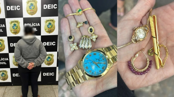 A prisão aconteceu no momento em que a suspeita cometia mais um furto no local. Ela foi abordada ao sair do prédio, ainda em posse de dinheiro, joias e bijuterias que havia acabado de roubar. Os objetos foram reconhecidos pelas vítimas.