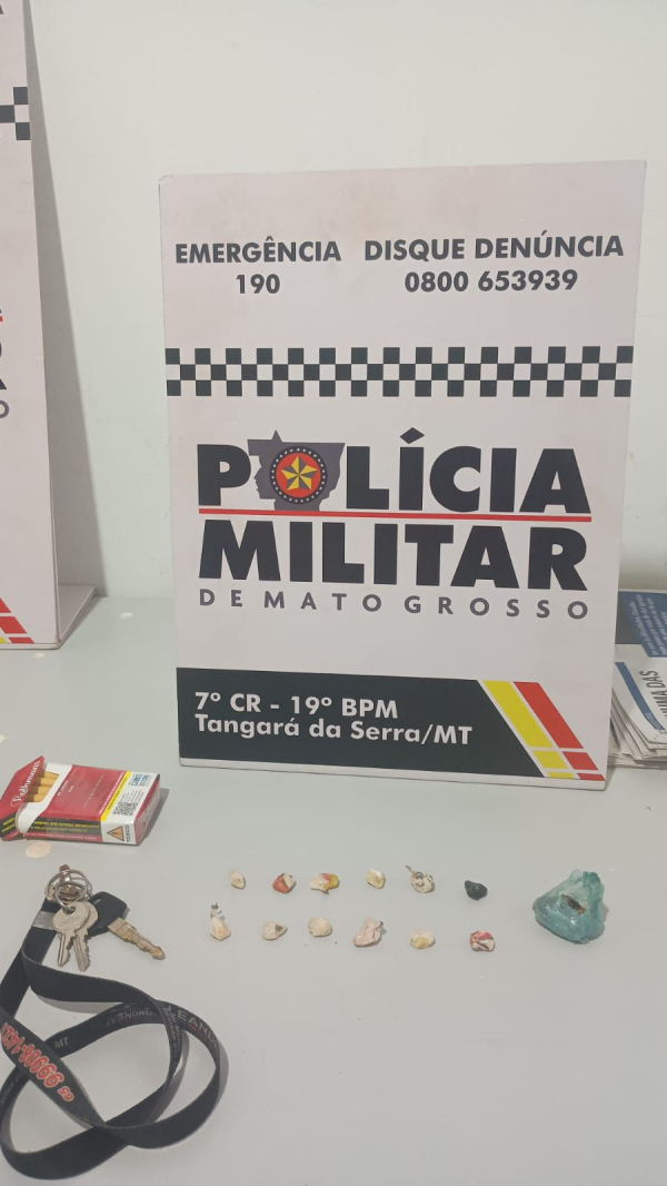 Com ele, foram encontrados 12 papelotes de pasta base e uma porção de maconha. No entanto, o desdobramento mais grave surgiu durante a checagem do veículo.